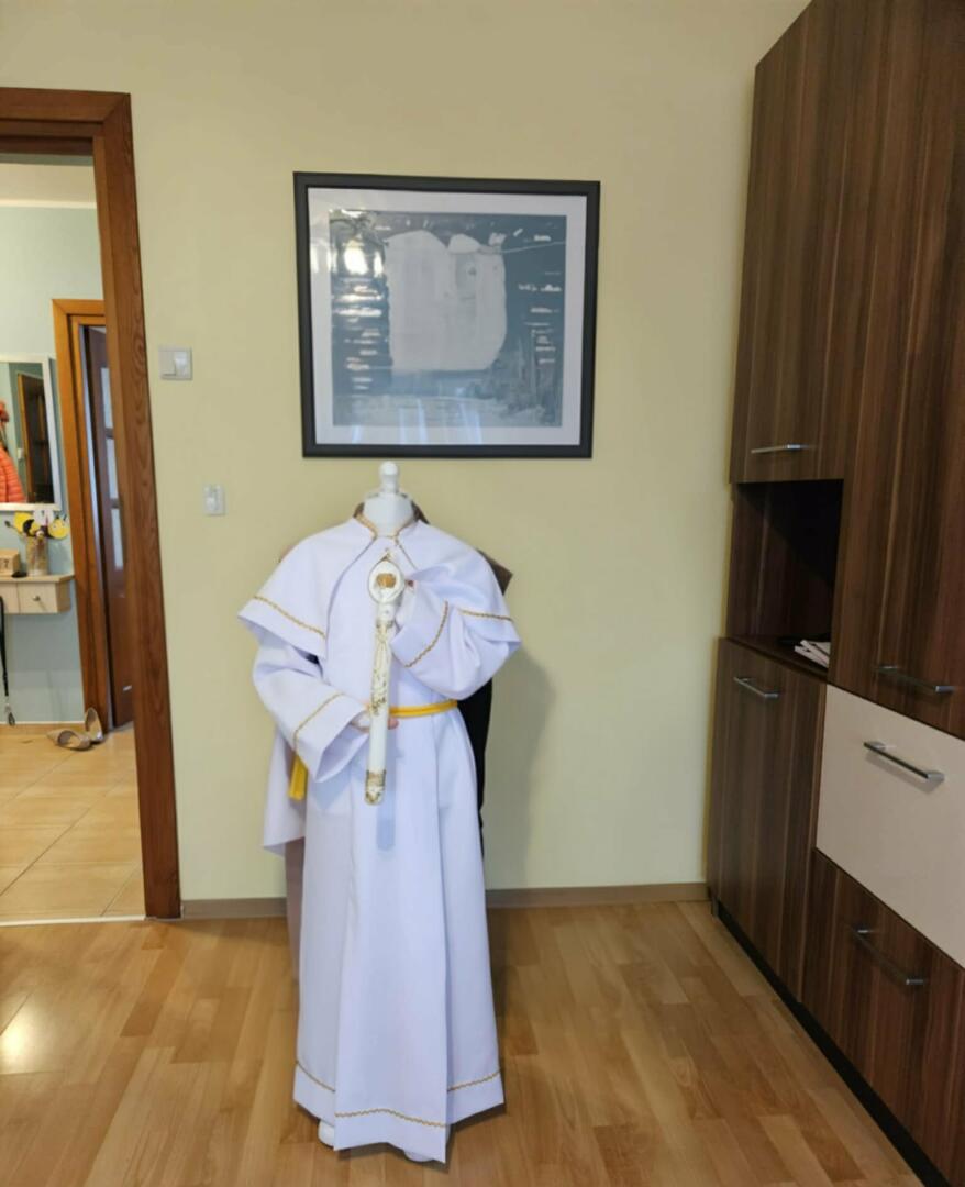 Sprzedam albę komunijna dla chlopca, długość 116 cm, szerokość 34 cm